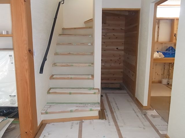 二階ホール一部と階段、一階のすべての養生が撤去されました。