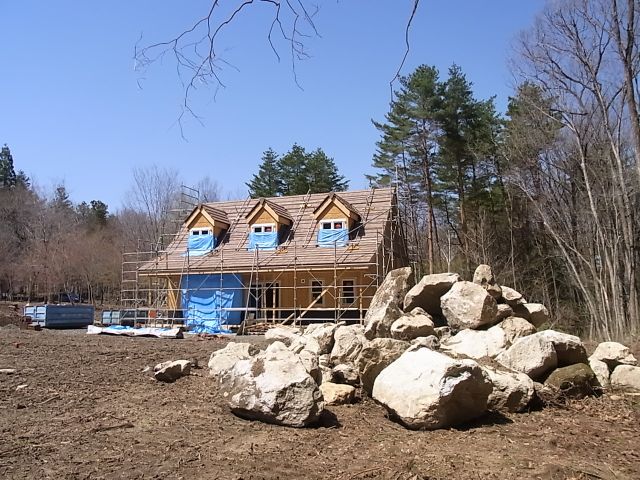 現在は、ガレージの基礎の施工と小屋組の刻みなどを行なっています。