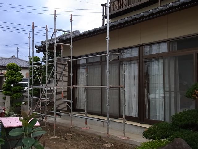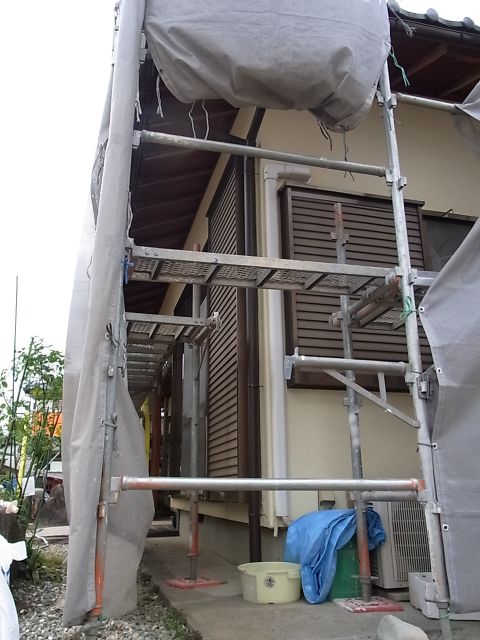 実は・・・一部足場が残っています。足場屋さんが撤去の時、樋を傷つけてしまったので、