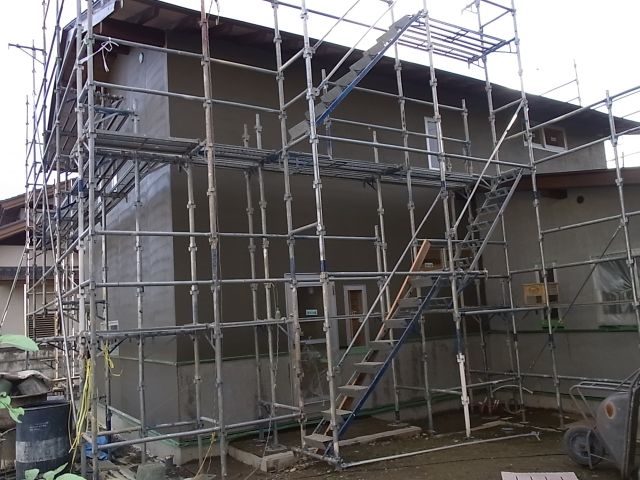 下塗りにモルタルに加水しメッシュシート伏せ込み、軽量モルタル塗を行いました。