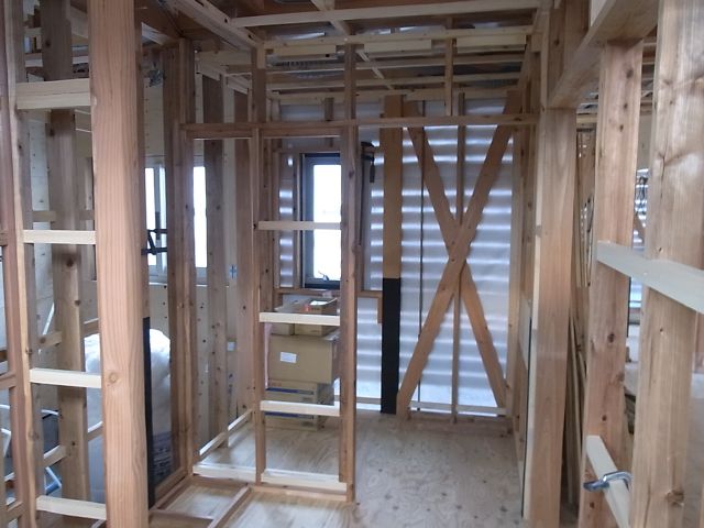 プラスターボード受けの下地組・収納転ばし根太組の施工を行いました。