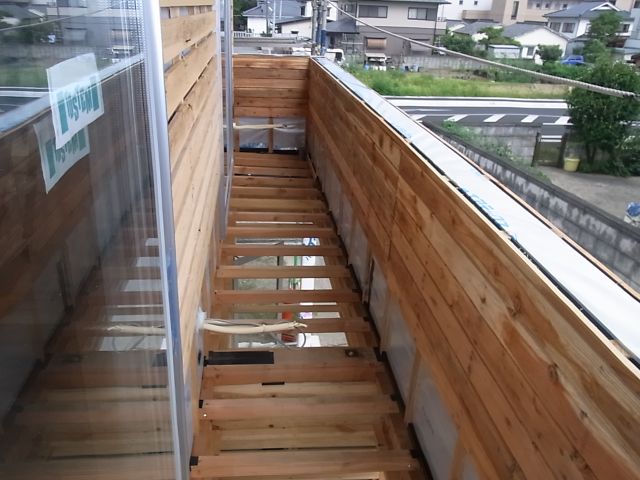 ベランダ手摺の防虫通気部材とザラ板が取付けられました。