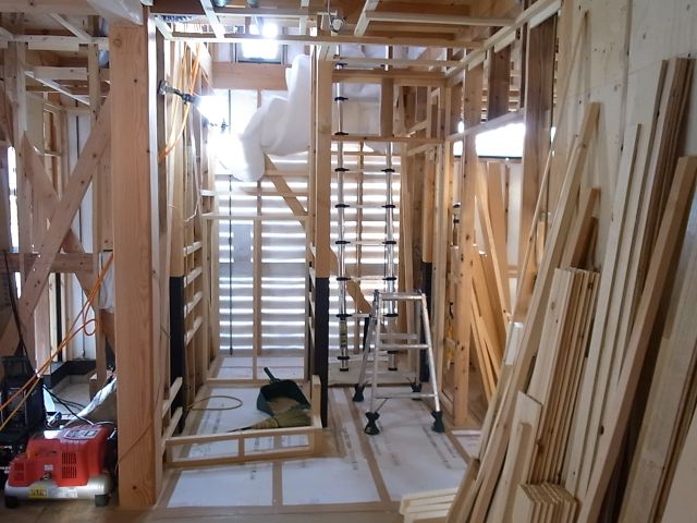 引続き階段の下地組と階段収納の壁下地が組まれました。