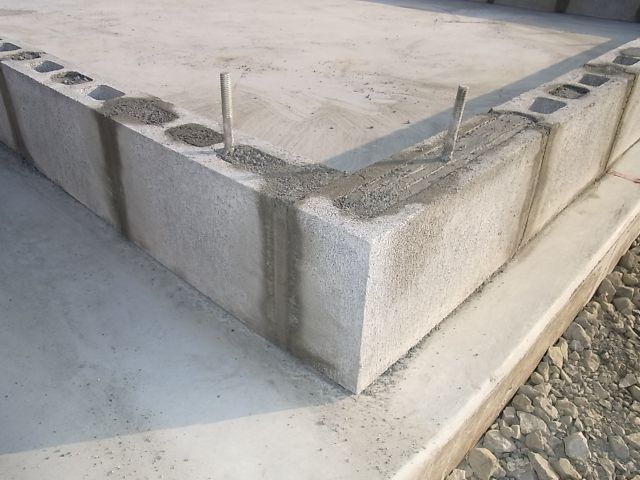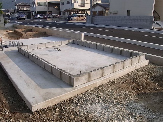 前回の続きで、コンクリートブロック基礎のモルタル詰を行いました。