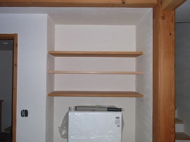 キッチン下部とリビングの棚板が加工取付が行なわれました。