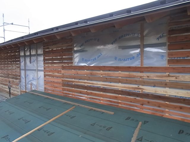 防虫通気部材取付・縦胴縁取付・ザラ板張り
