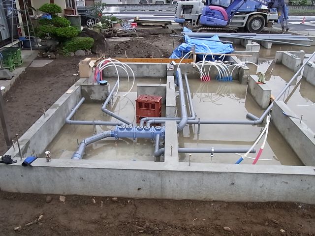 今回は排水ヘッダ方式をとりました。汚水・雑排水を一箇所から下水へ排水します。