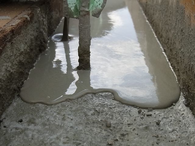 天端レベラーをピンの頭まで流し込み、平らに仕上げていきます。