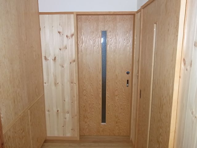 各木部の補修等(玄関枠パテ処理・外部化粧柱など)ハンガーパイプ取付。