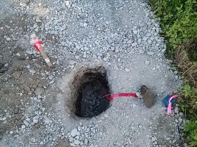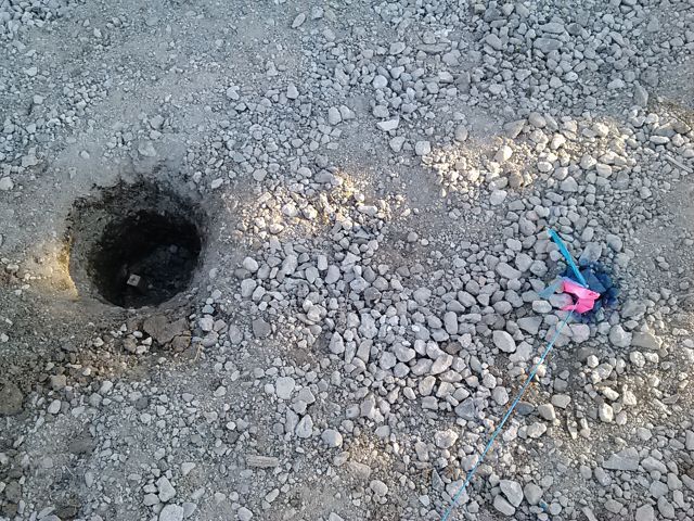 元々駐車場だったのか、表層がガチガチで四箇所の内2箇所の穴掘りがすごく大変でした。