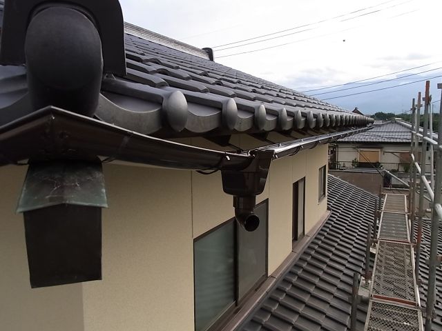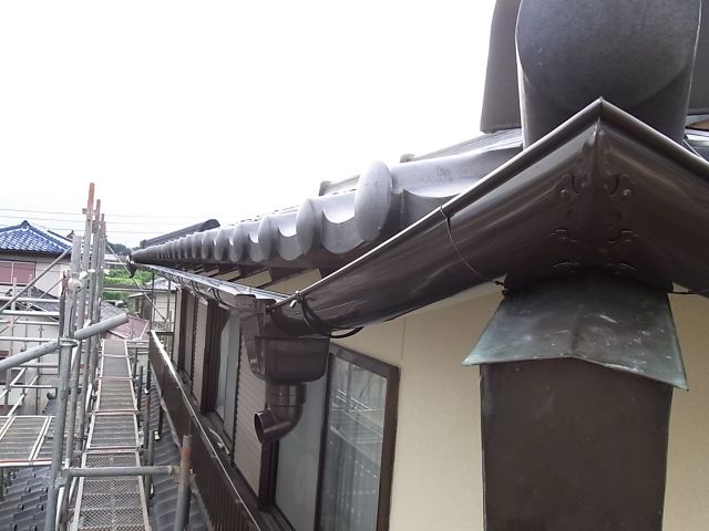朝から既存の樋を撤去!補修をしながら、吊金具の設置。