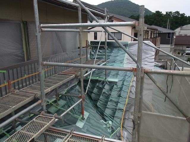二階の養生が終わりました。職人さん一人でやってますので、大変です。