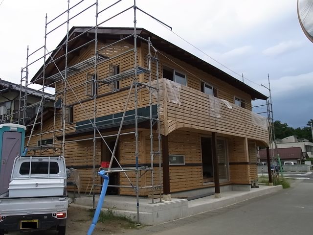 庇施工で外していた足場を棟梁が組んでくれましたので、外部の塗装を行うことができました。
