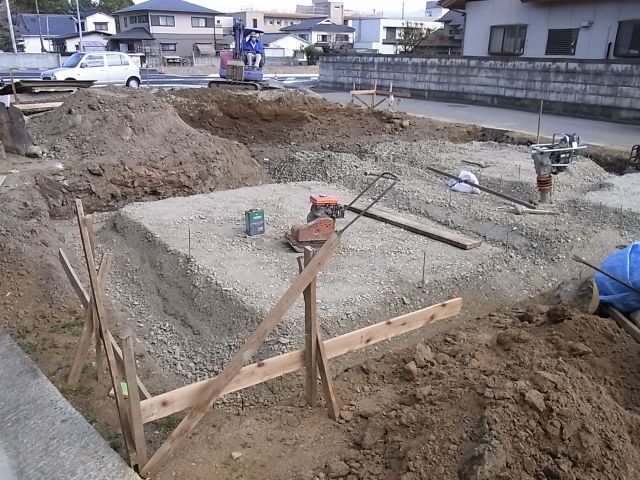 掘削して砕石を入れて、念入りに付固めます。