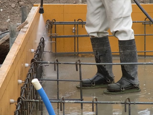 打継ぎコンクリートとの付着をよくするため、十分固まっていないコンクリートの表面を