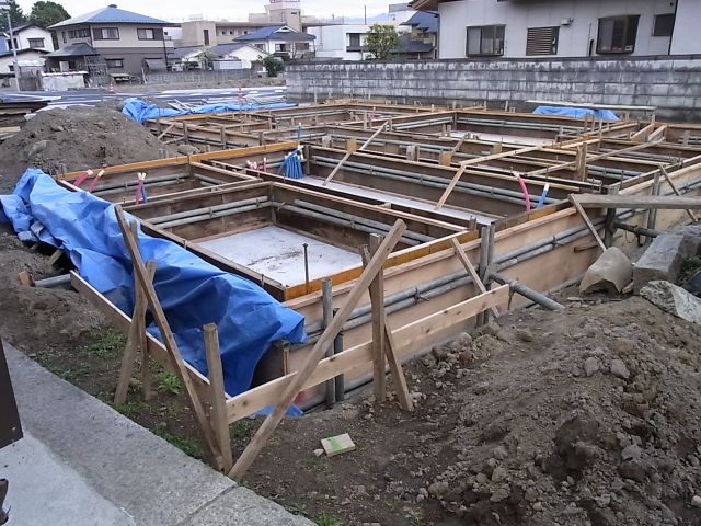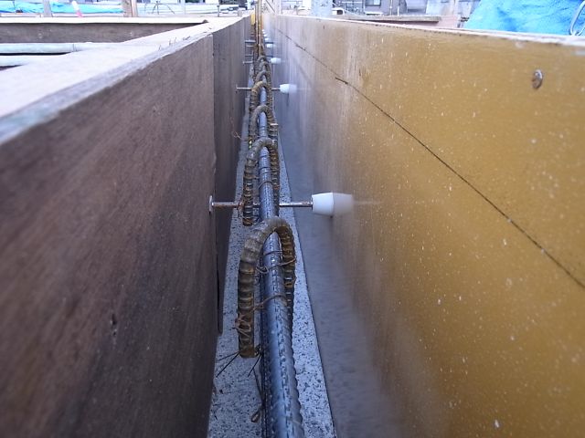 鉄筋のかぶり、型枠が図面通り組立てられているか、番線が飛び出ていないかチェックしました。
