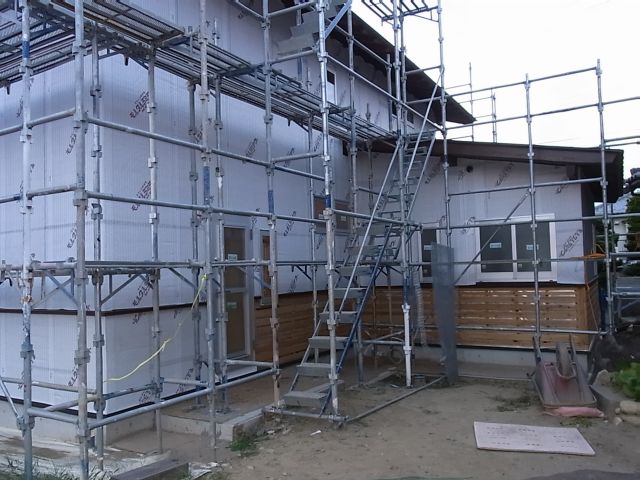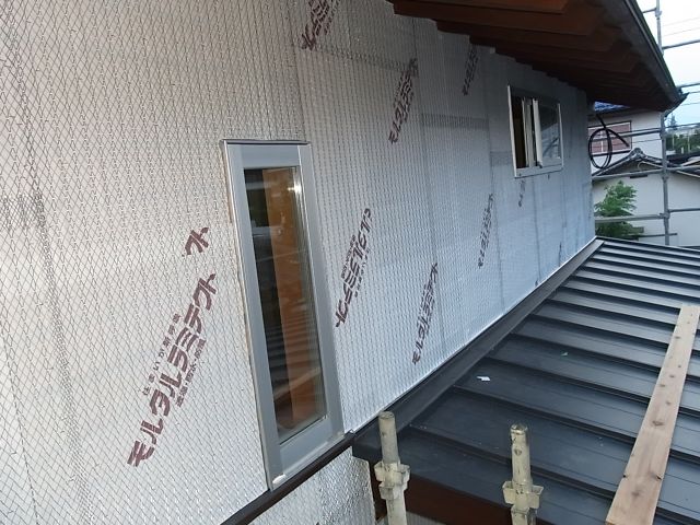 東面・北面の波ラス張付けがほぼ終わりました。