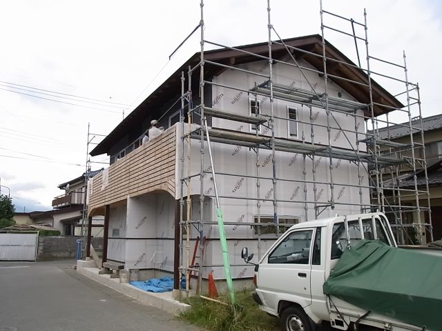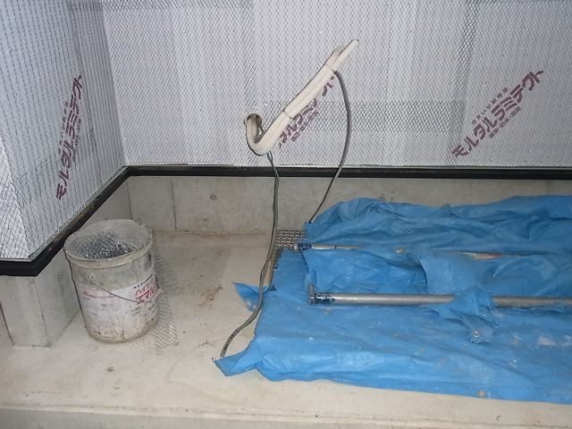 波ラスの張付が行なわれました。ベランダの手摺部分が残りました。