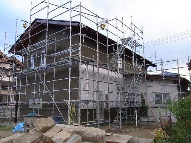 下塗りのモルタル塗が始まりました。丁寧に綺麗に塗られて細かな所も綺麗でした。