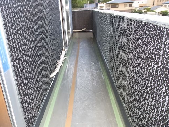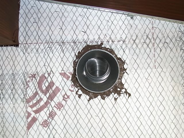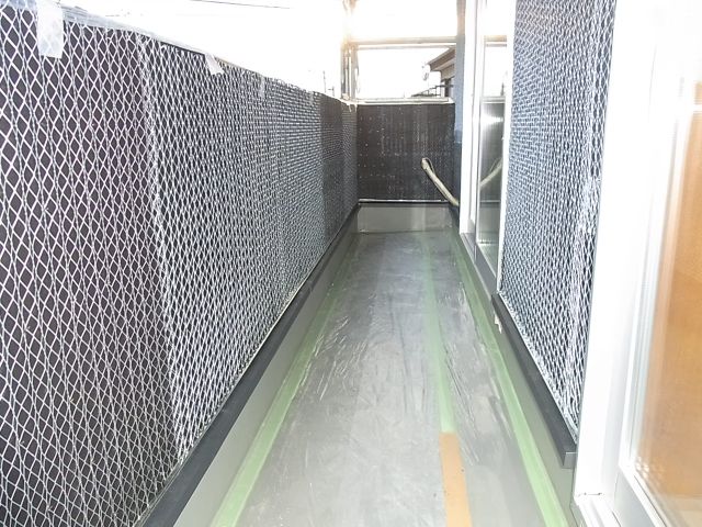 ベランダ手摺部分内側の防水紙、波ラス取付が行なわれました。