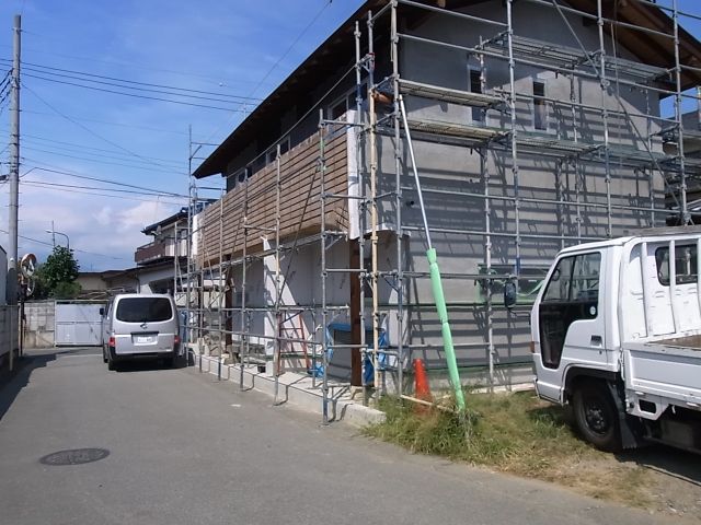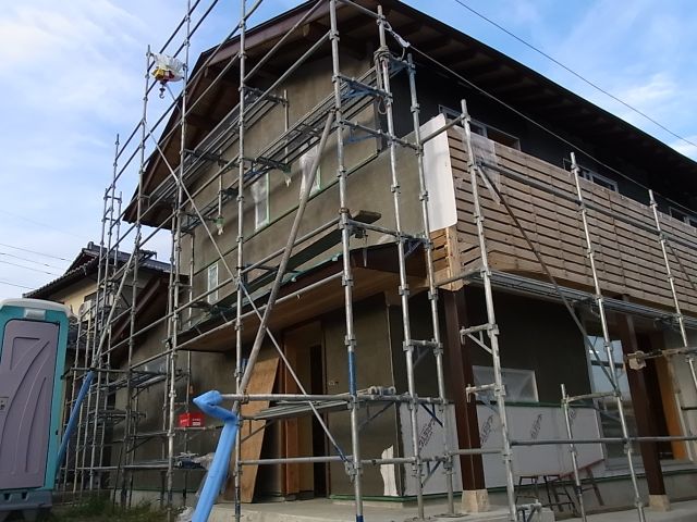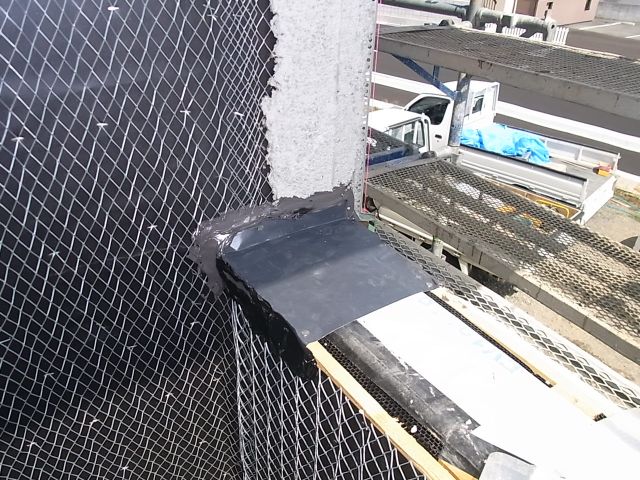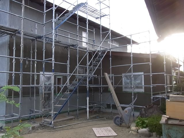 北面と西面一部南面に、下塗りのモルタル塗が行なわれました。