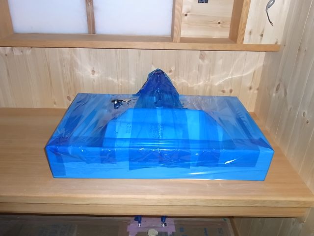 洗面器位置が決まったので、カウンタに穴を空け、設置固定・水栓器具を取付ました。