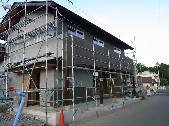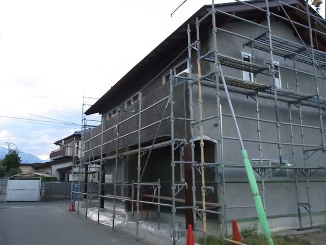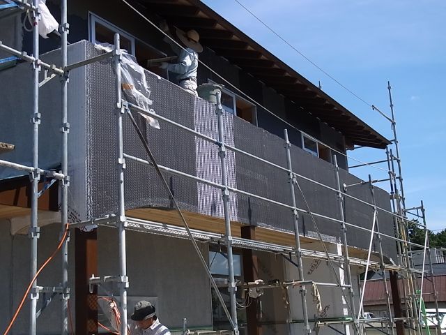 南面下塗りのモルタル塗が行われました。
