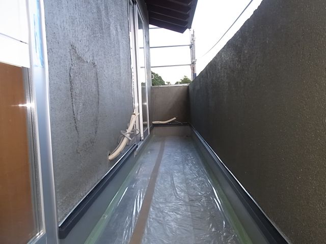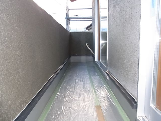 ベランダ手摺部分外側の防水紙、波型ラス張りが施工されました。