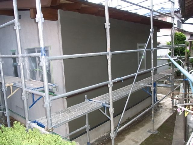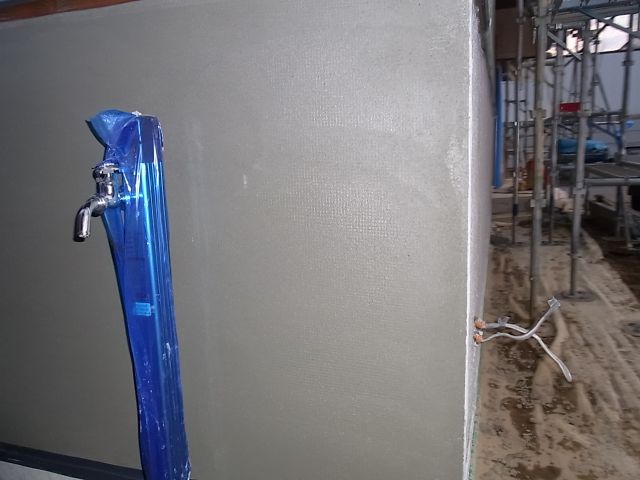 本日より、中塗りの軽量モルタル塗が行なわれました。