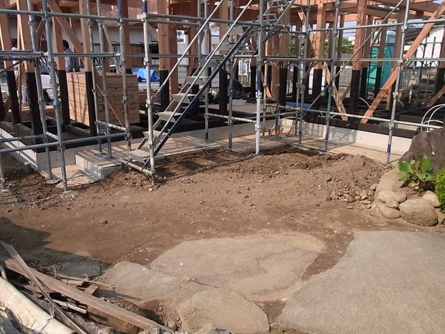 勝手口ポーチの型枠の取り外しを行い、周りを整地しました。