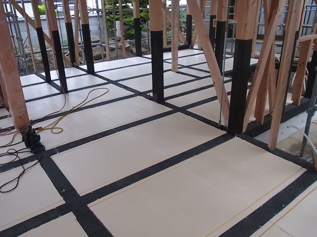 厚さ85ミリ、ポリスチレンフォームの床下断熱材を使用しました。