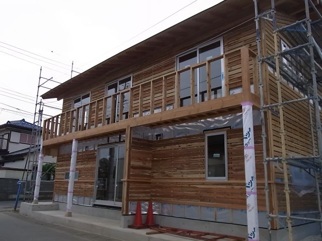 一階通気胴縁・ザラ板張り・帯の取付が行われました。