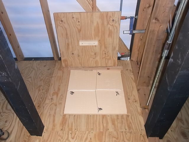 床下点検口開口開け、合板・断熱材カット