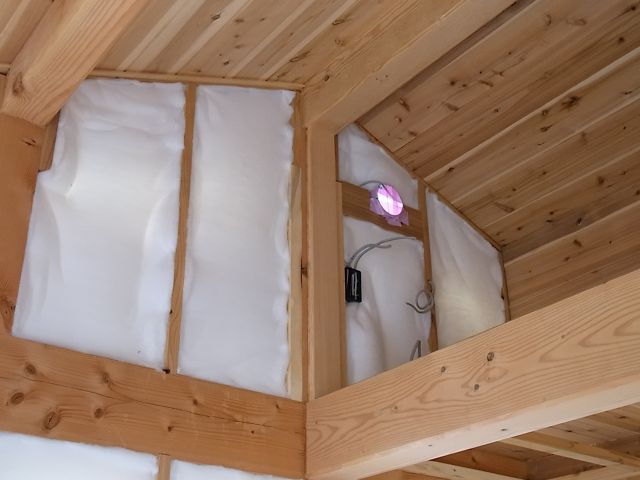 ロフトの見切りの付柱取付と杉板張りがはじまりました。