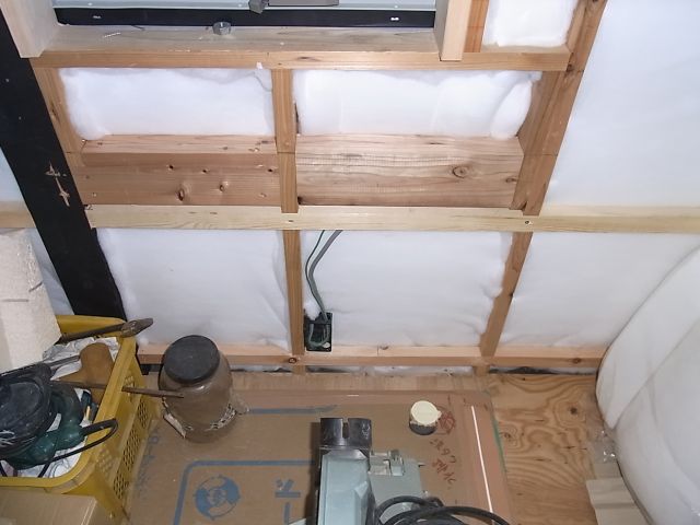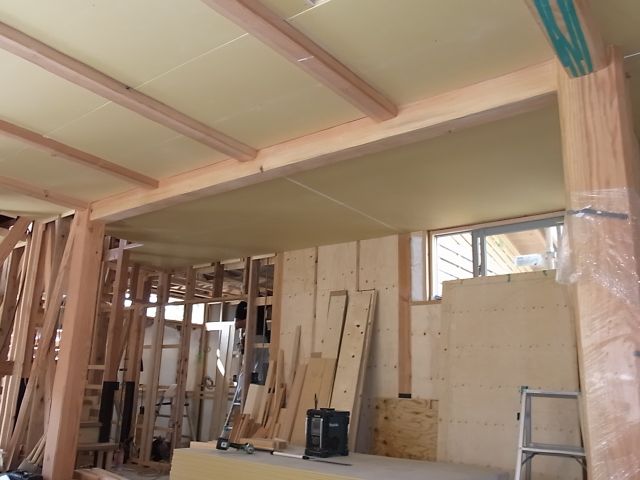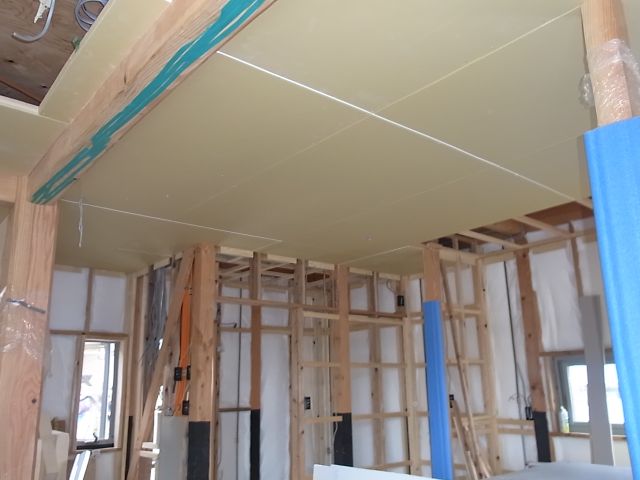 一階の天井下地のプラスターボードが張られました。