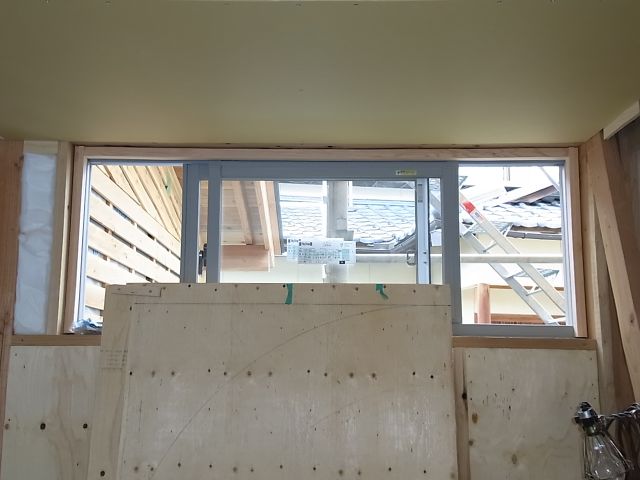 塗り込み部分の窓枠が取付けられました。