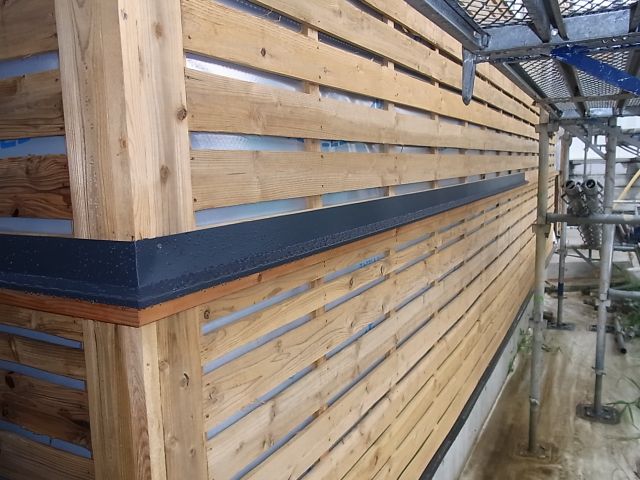 一階・二階帯の水切りが取付けられました。