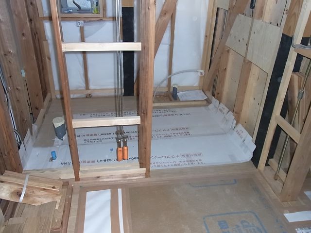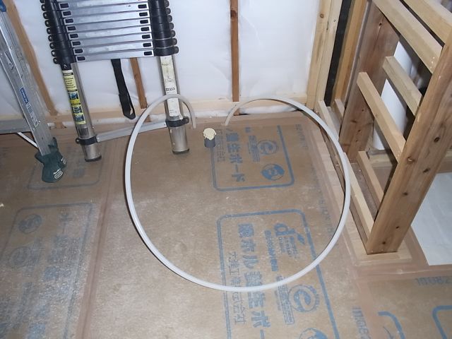 洗面・洗濯・便所の給排水の配管が施工されました。