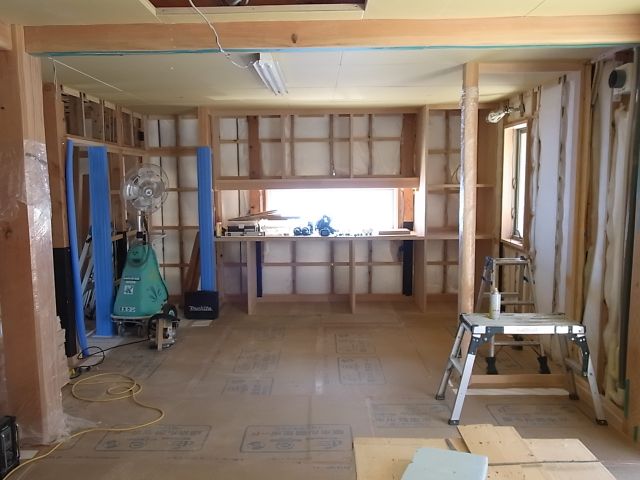 設備と絡む所などが残りますが、一階の木工事もあとわずかで完了です。