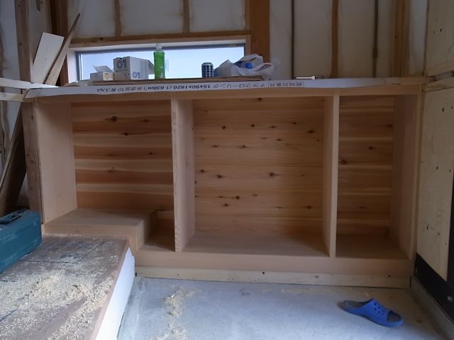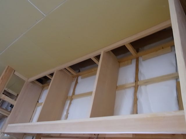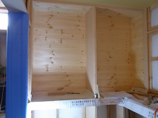 収納内部の下地組(胴縁組・野縁組)施工され、杉板張り・パイン板張りが行なわれました。