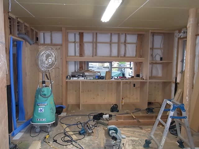 仕上げが塗られてくれば、それほど圧迫感もなくなると思います。