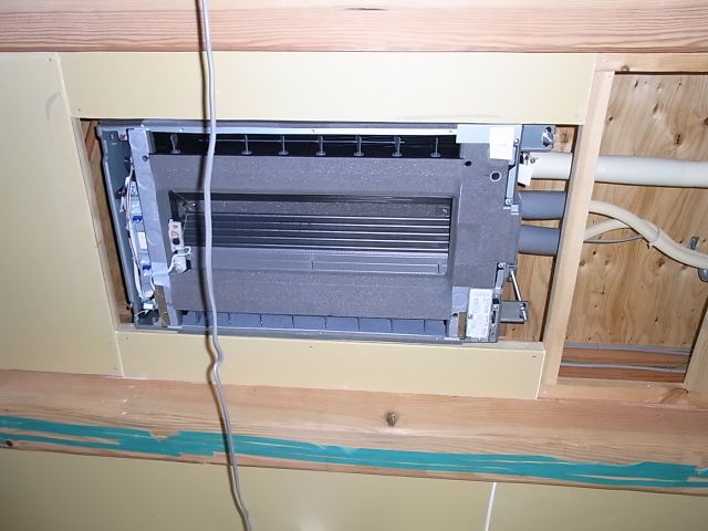 洗濯機給水栓取付・給水配管・天井カセット型エアコン配線配管接続。