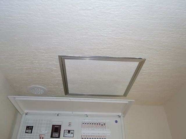 点検口取付。洗面収納棚板取付。各シミキズ等修復。