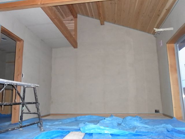 キッチンボード貼付けが終われば、内部塗壁が始まります。