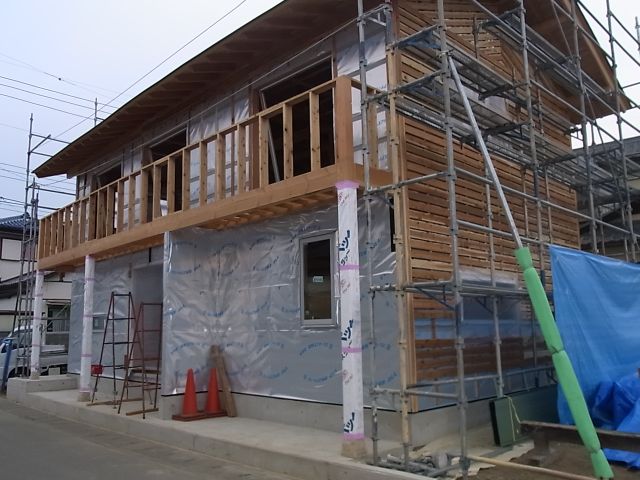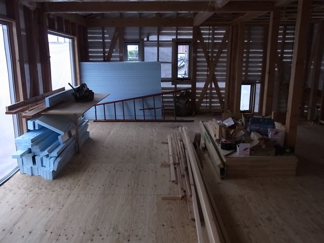 水切りが遅れていて、下部の所が施工がされていませんが、サッシ窓も取付けられて