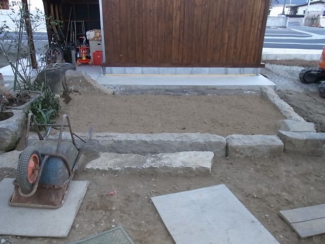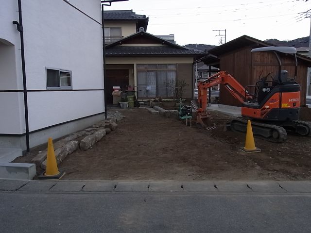 先週の続きで、床掘りと砕石敷込み・転圧を行いました。