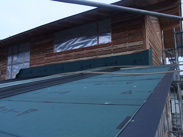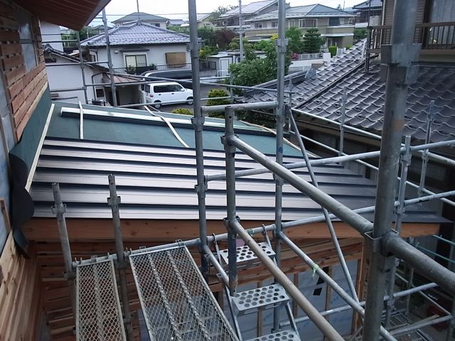 ガルバニウム鋼板縦平葺きが始まりました。