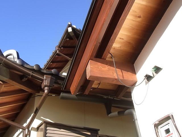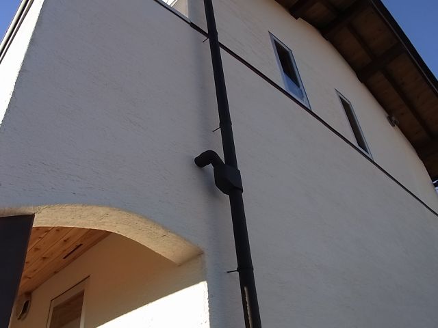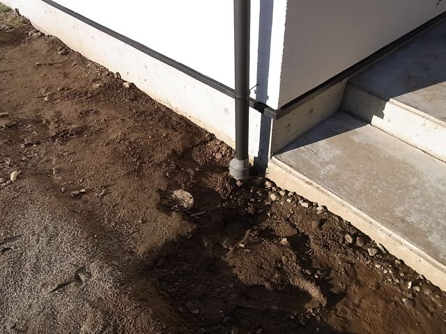 雨樋と雨水桝の接続。換気フード取付。火災報知器取付。電気オーブン搬入設置。