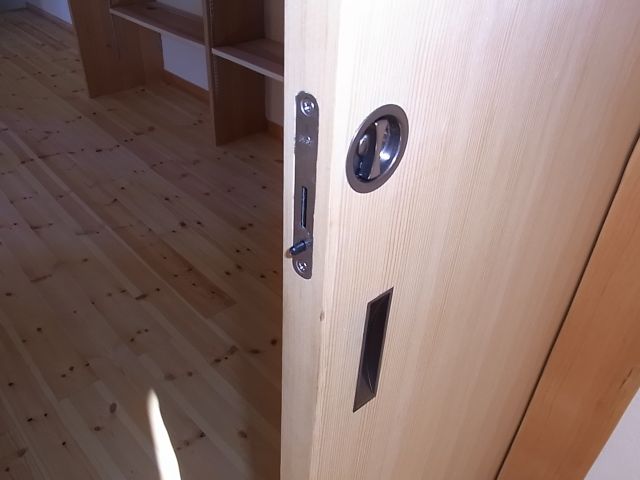 収納部の取手、引戸の引手・間仕切錠を取付けました。