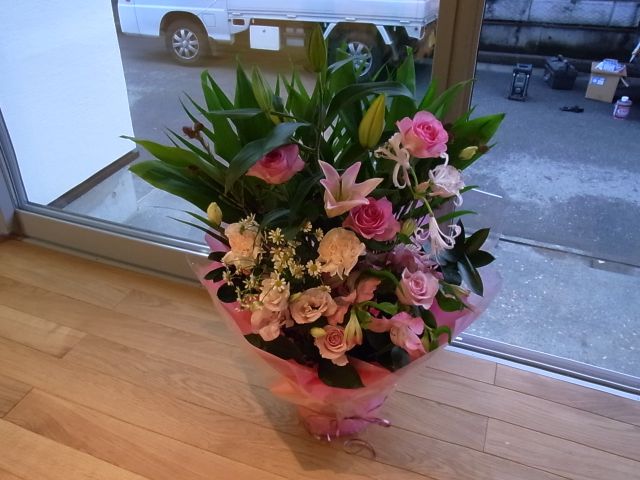 親方から施主へ、お祝いのお花を送りました。綺麗でしたので写真におさめました。